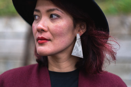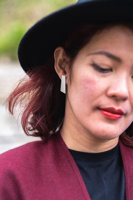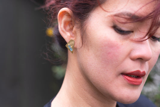 "Aqua" mismatched silver trapezoid earrings with aquamarine