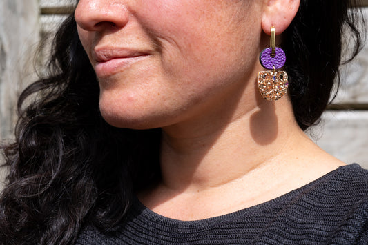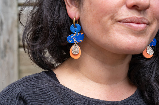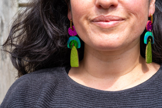 Each component is handmade in her home studio with care and precision ensuring every pair is truly a one of a kind piece of wearable art. Her creative passions and unique styles are driven by vibrant colours, luxurious textures, patterns and mixed materials.