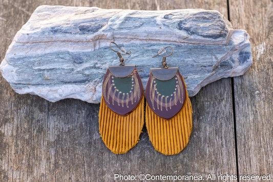 Long Feather earrings - mustard